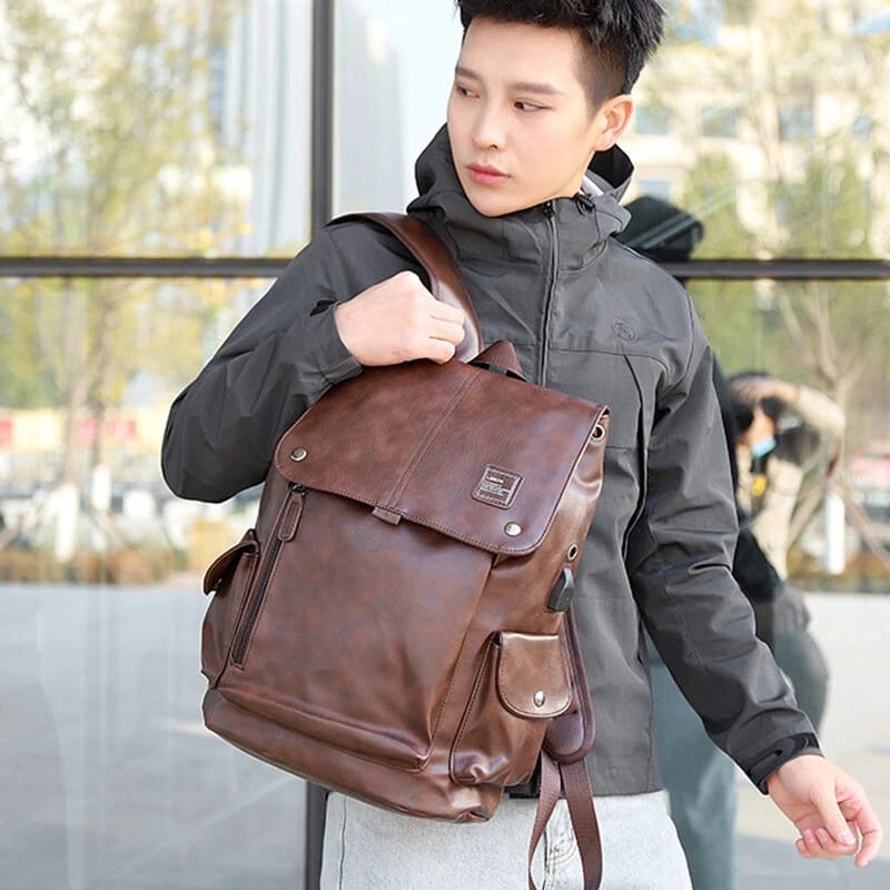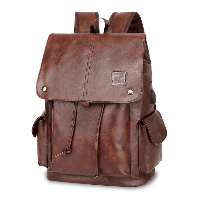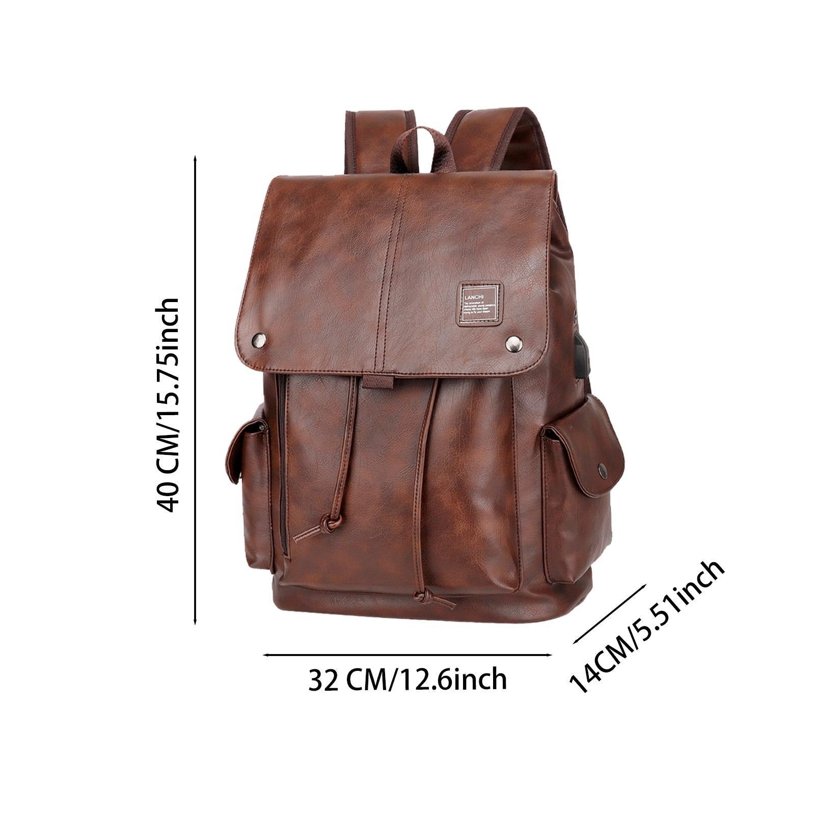 Main compartment keep your 15.6 inch laptop safe and protected while the several functional pockets offer enough space for you to hold other items perfectly, such as laptop accessories, A4 files, clothes, camera, books and other daily items, very convenient.Durable & Practical - This laptop backpack is made of high grade waterproof PU fabric, meaning that it is durable and can lasts for years. Stylish daypack with superior compartment pocket design, fine workmanship, fashion, durable, convenient.Stylish Bag - With USB charging port, Retro British Style, drawstring open and close the bag, very convenient, also make the bag more stylish, a great helper in your daily life. This bag can follow you around whenever or wherever you are and make you the focus with its elegant and fashionable design.Unisex Waterproof Backpack: Designed with casual and unisex style, this fashion rucksack is perfect for school, working, hiking, camping and travelingCrafted from premium PU leather, this backpack combines durability with a vintage aesthetic. The chains add a touch of sophistication, making it a stylish accessory for any occasion. The arcuate shoulder strap ensures comfort during long journeys, while the soft handle provides an alternative carrying option. The solid pattern type and sleek design make it a versatile piece that can be worn to school, college, or on travels.Functional and Spacious*Designed with the modern man in mind, this backpack is not just about style but also about functionality. The softback design offers flexibility and comfort, while the polyester lining provides durability and easy maintenance. The main compartment is spacious enough to accommodate a laptop, books, and other essentials, making it an ideal choice for students and professionals alike. The exterior silt pocket provides quick access to smaller items, ensuring that you stay organized on the go.
