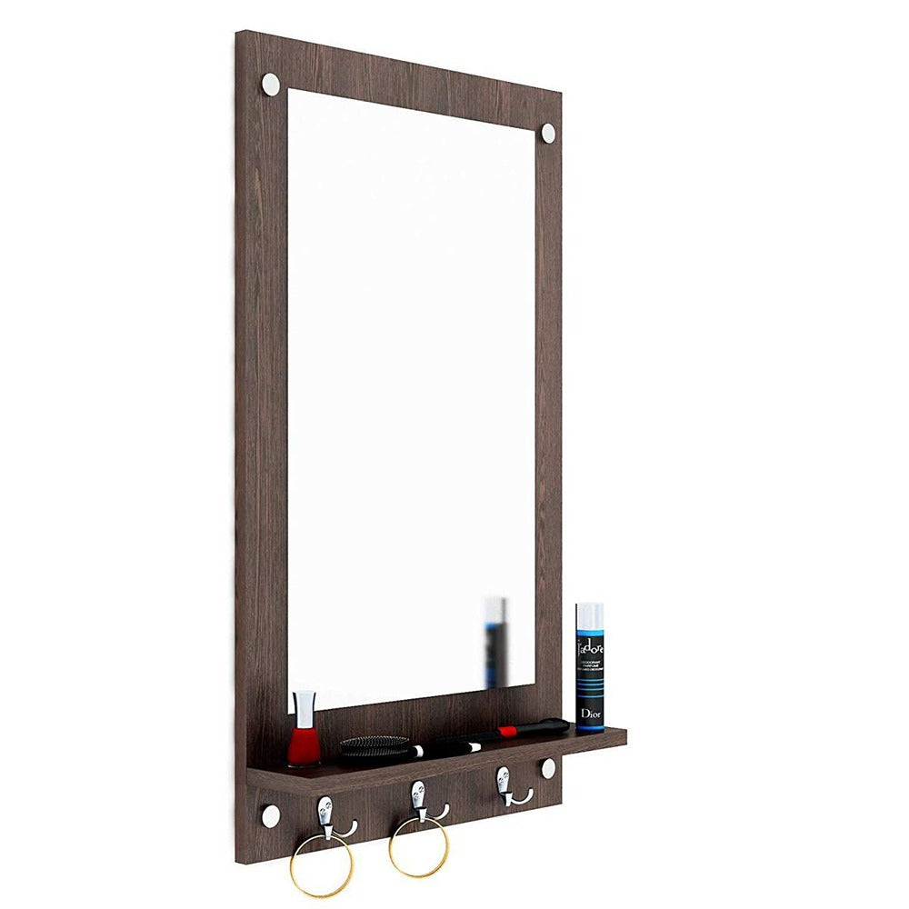 Lucrative Wall Mirror with Shelf & Hanging Hooks